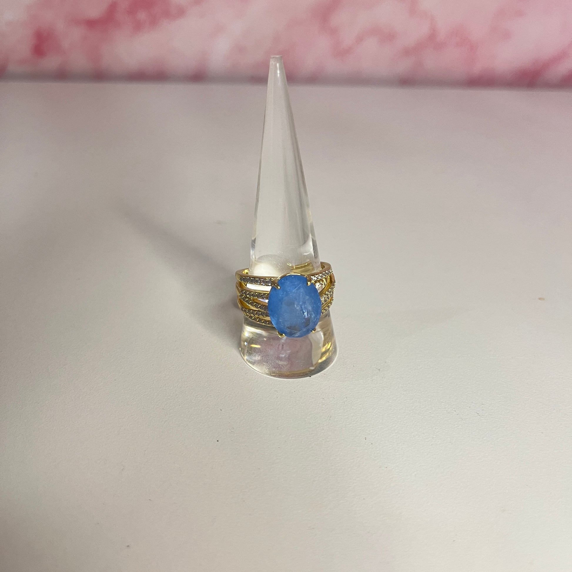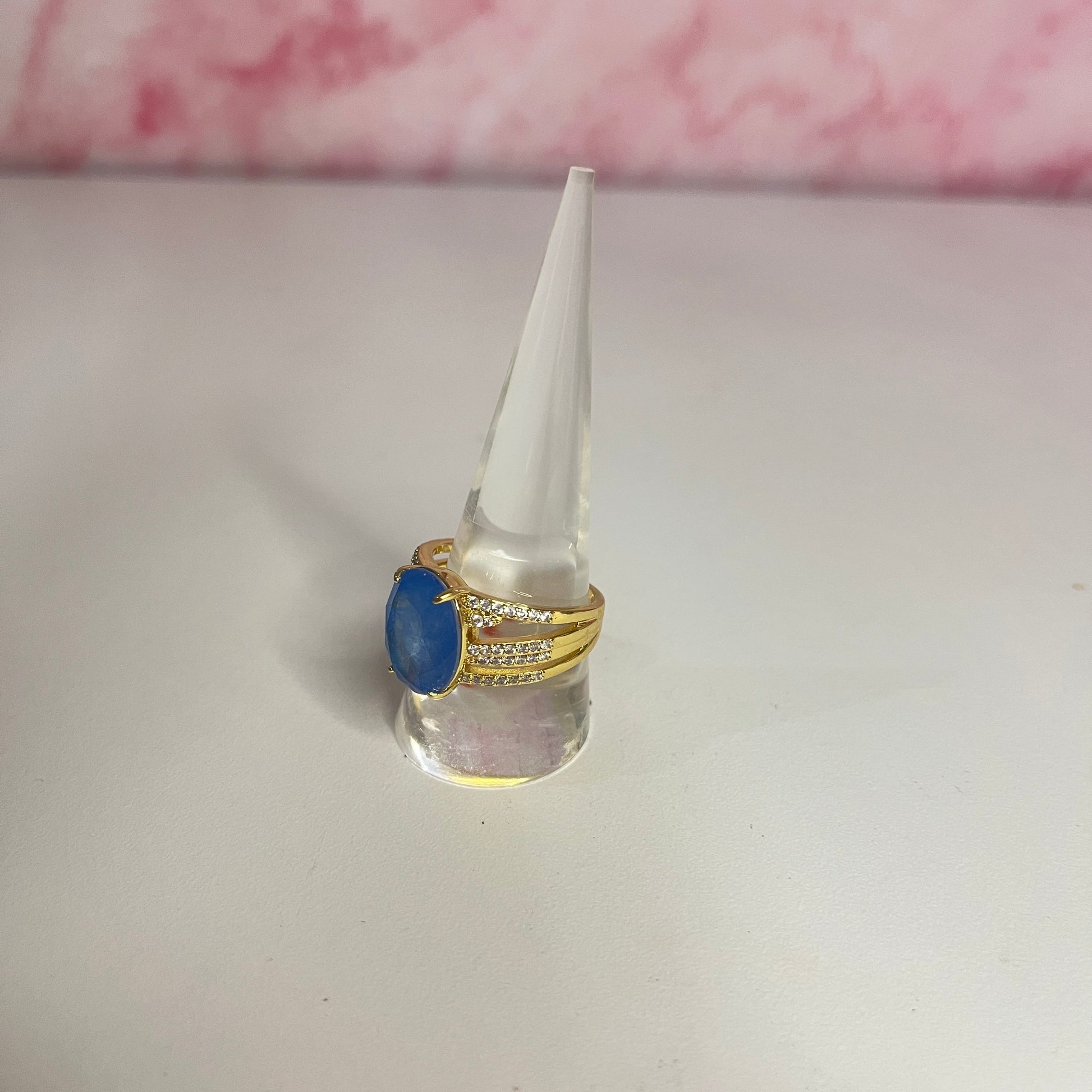 Lab Created Ocean Blue Quartz on Gold Plating.
