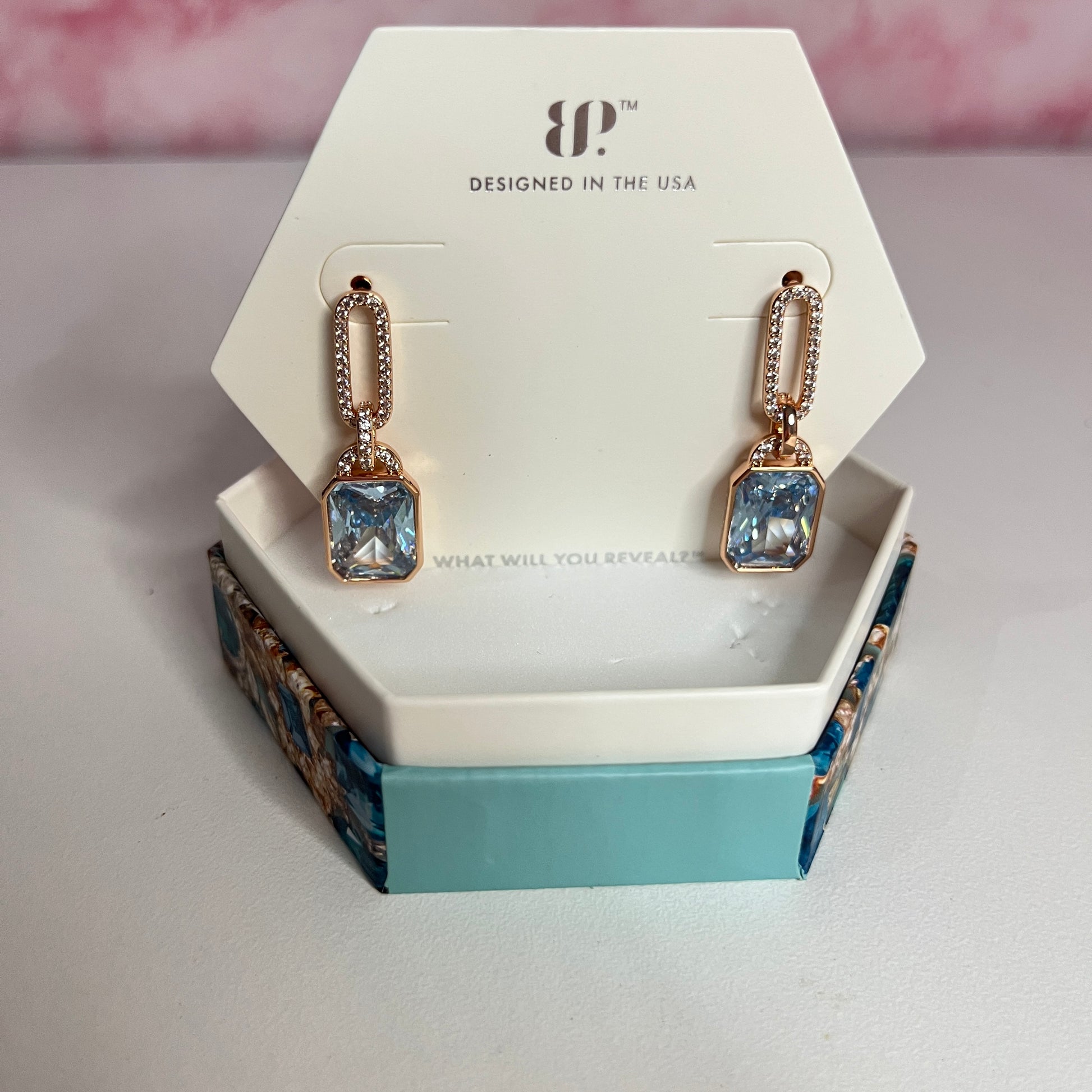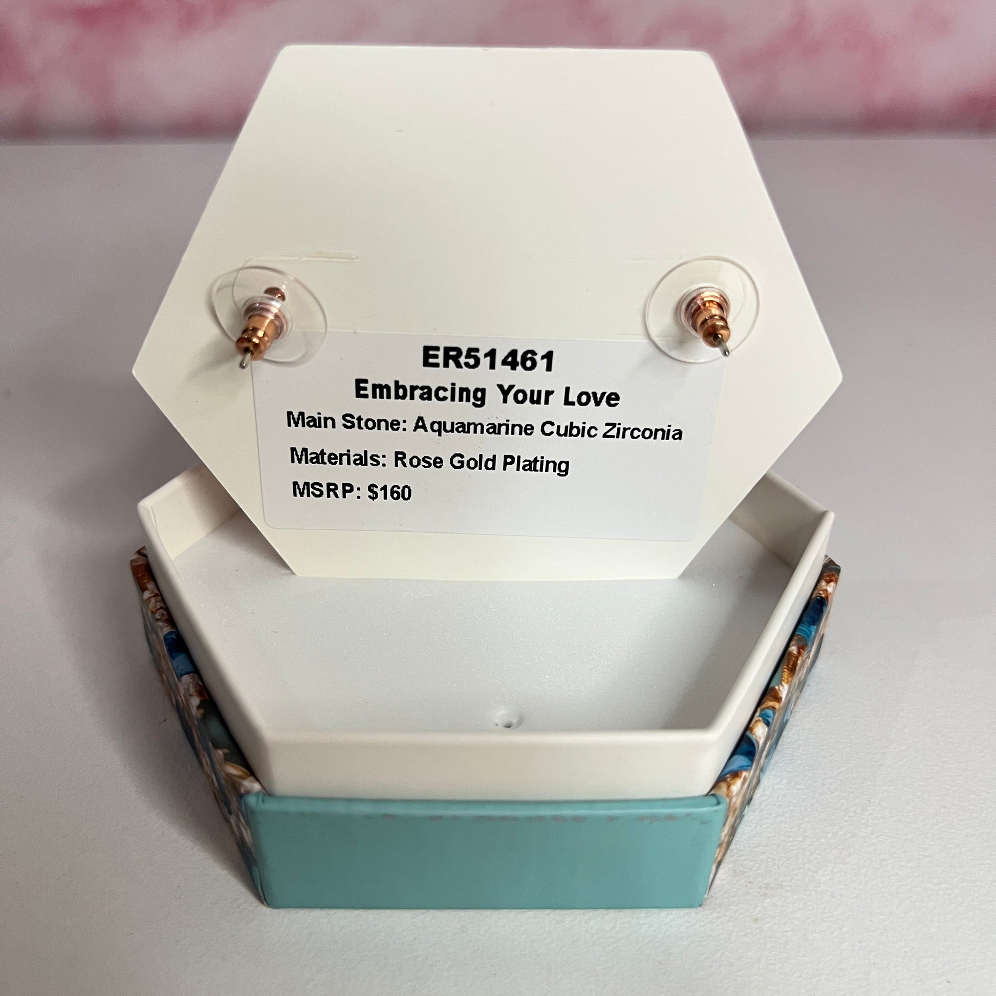 Aquamarine Cubic Zirconia on Rose Gold Plating.