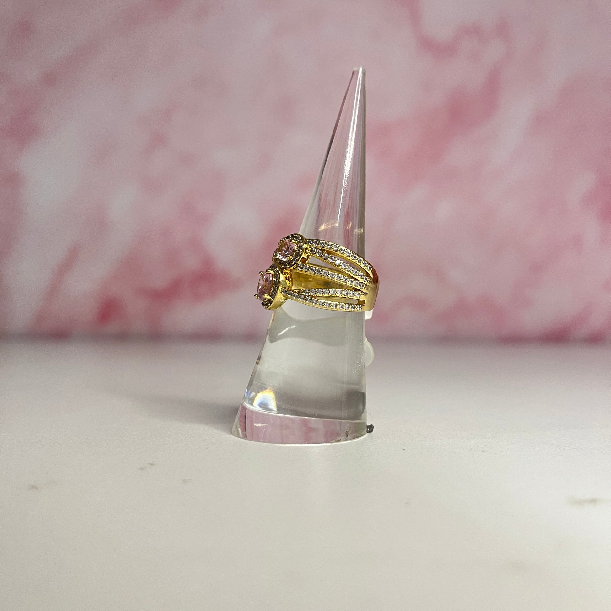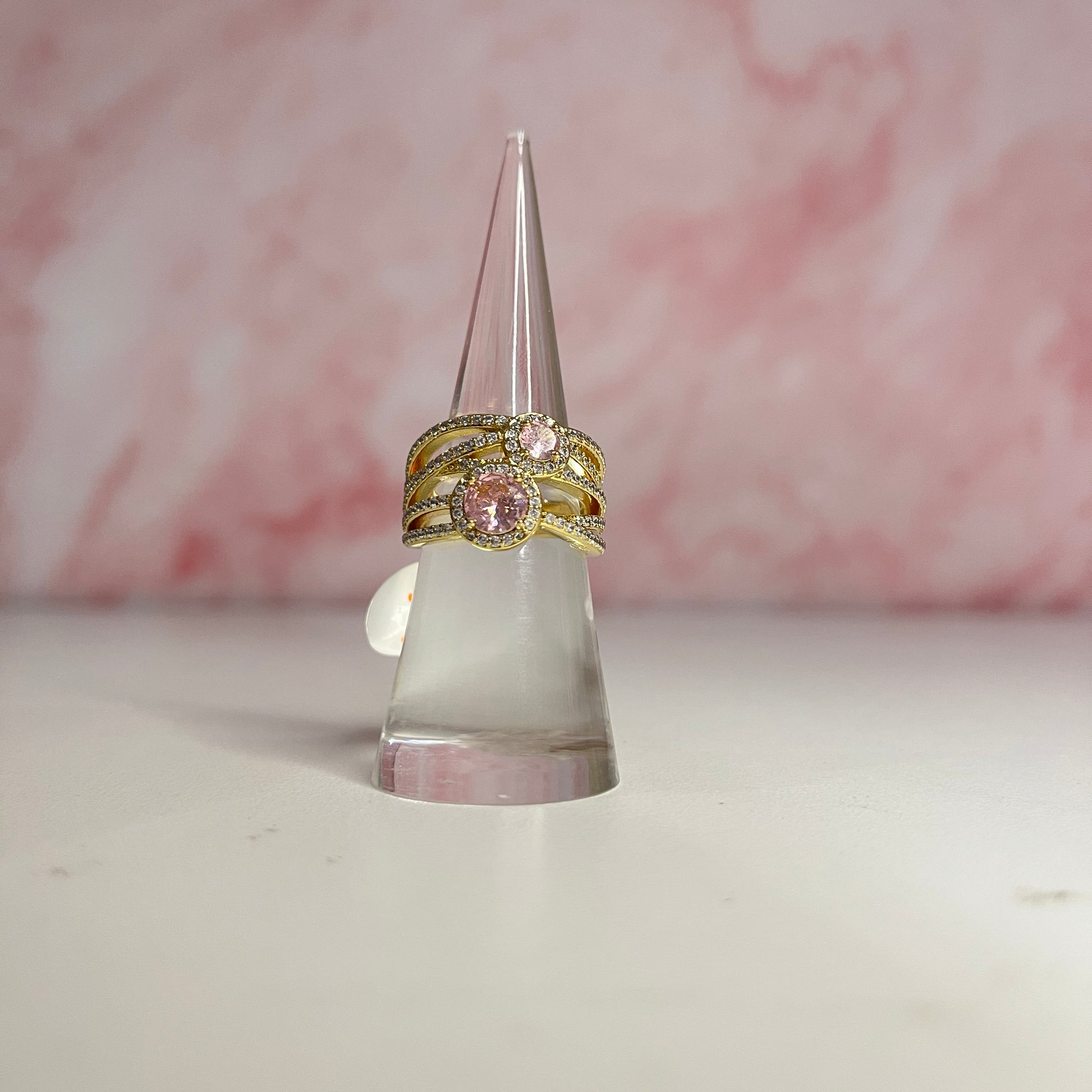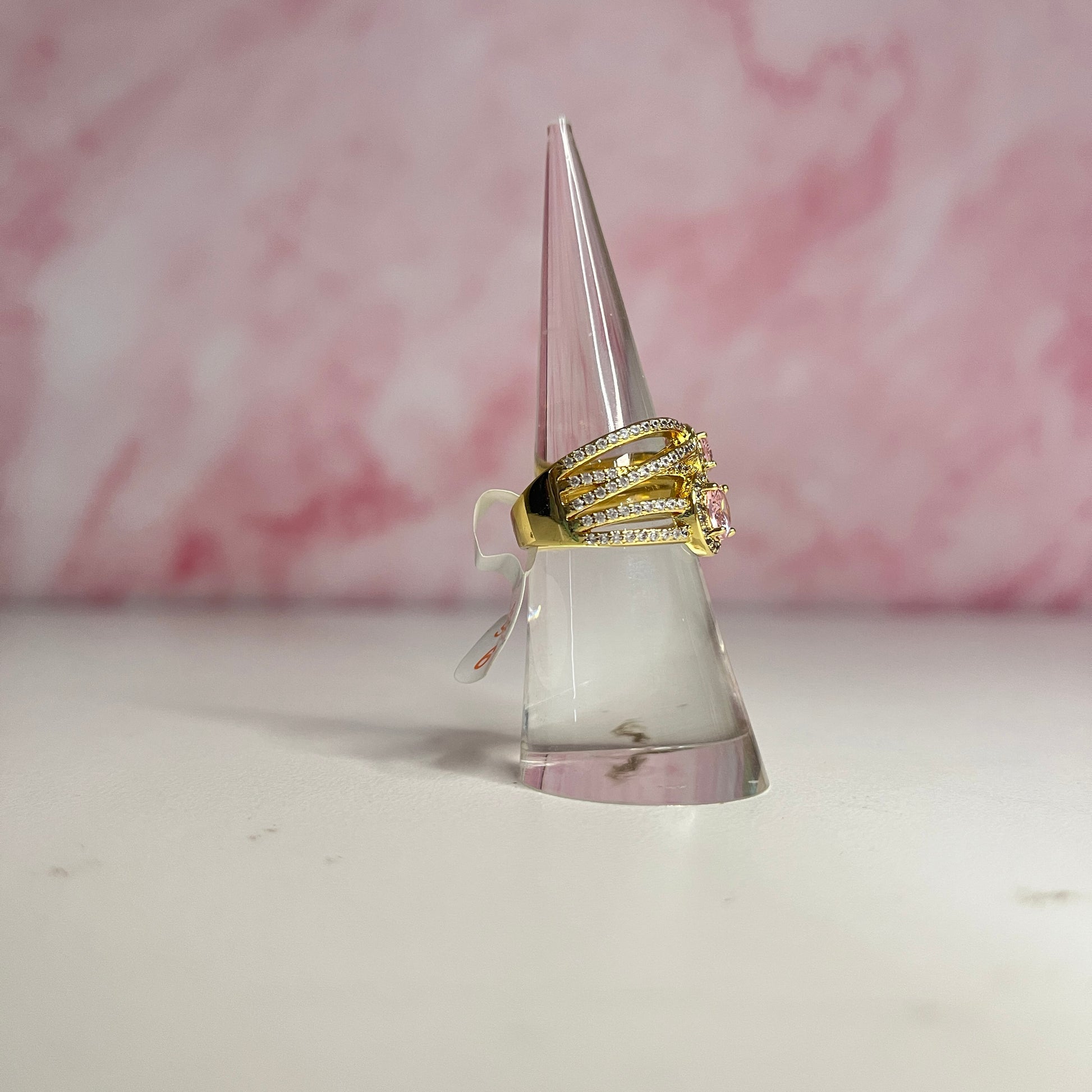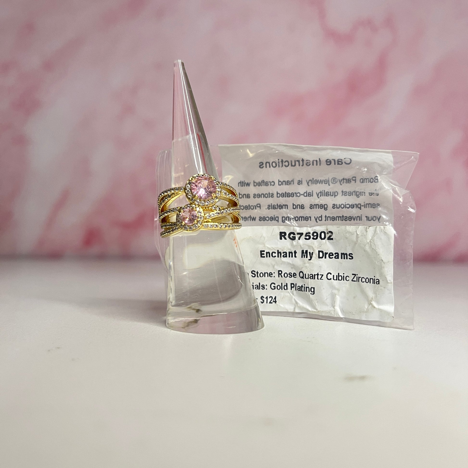 Rose Quartz Cubic Zirconia on Gold Plating.