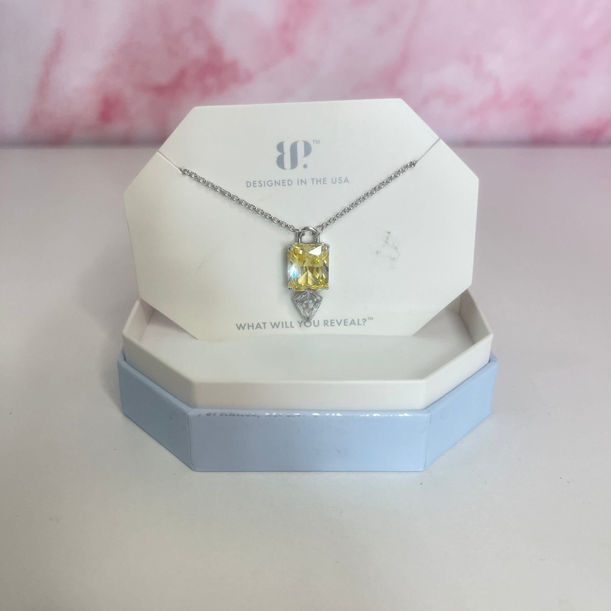 Lemon Cubic Zirconia on Rhodium Plating.