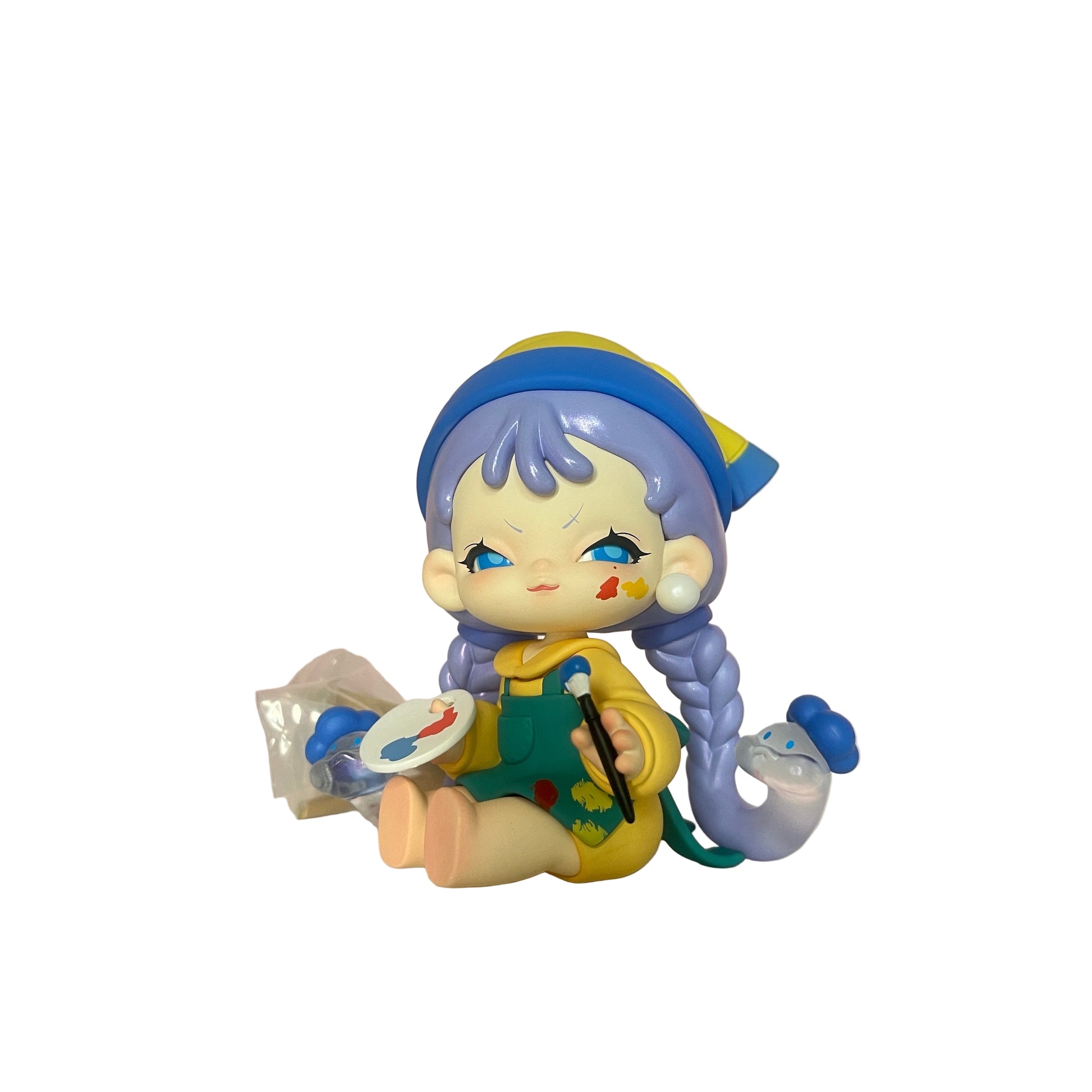 Bring home this adorable and expressive Artist Girl from the Memesoo Quirky Girl Diary series! With her lilac pigtails, painter’s bandana, and tiny paint splatters on her face and clothes, she looks like she stepped right out of an art studio. She also comes with her painting accessory (not pictured) for the full creative setup.