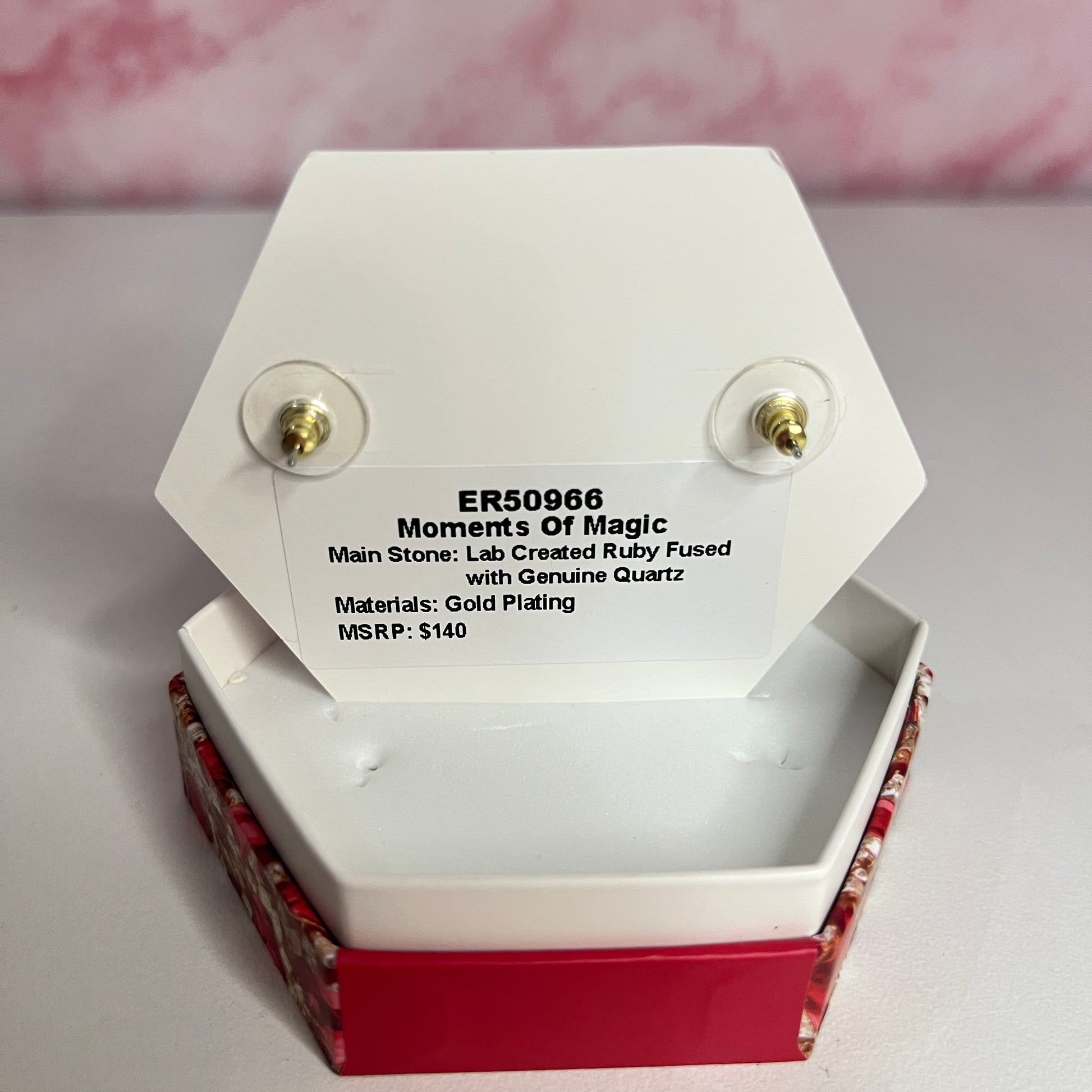 Lab Created Ruby Fused with Genuine Quartz on Gold Plating.
