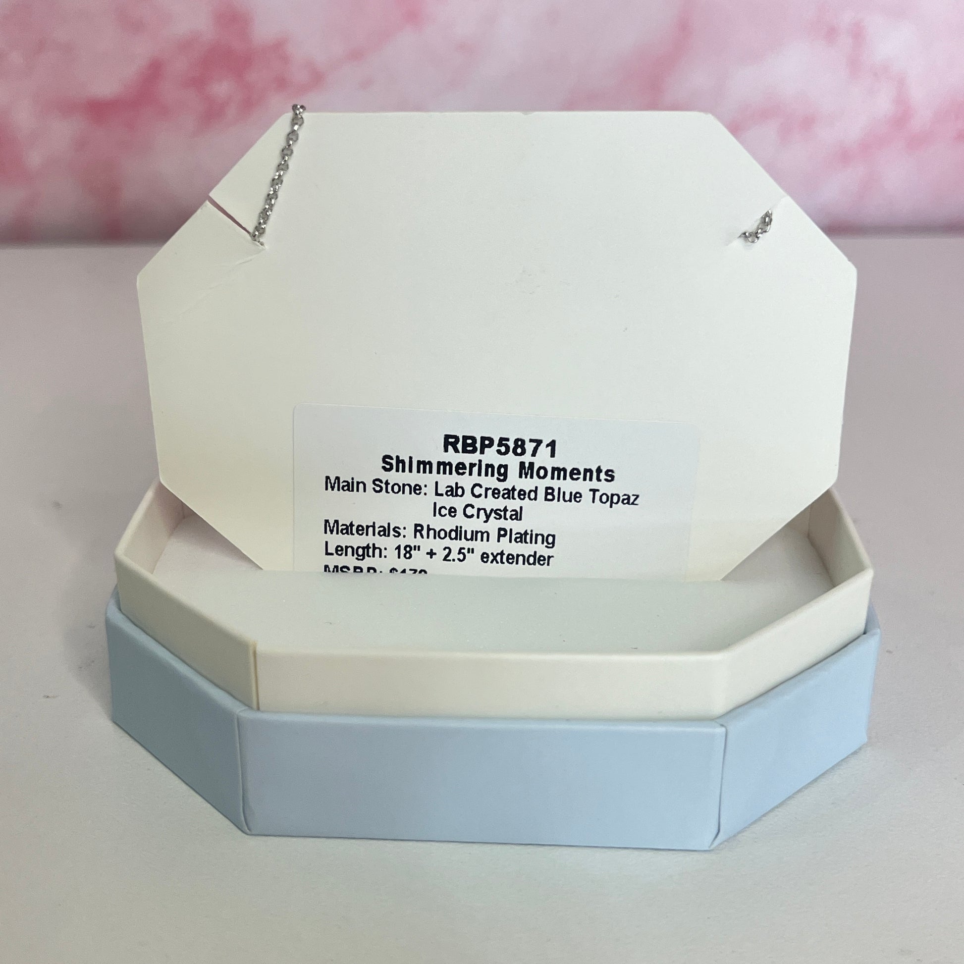 Lab Created Blue Topaz Ice Crystal on Rhodium Plating.