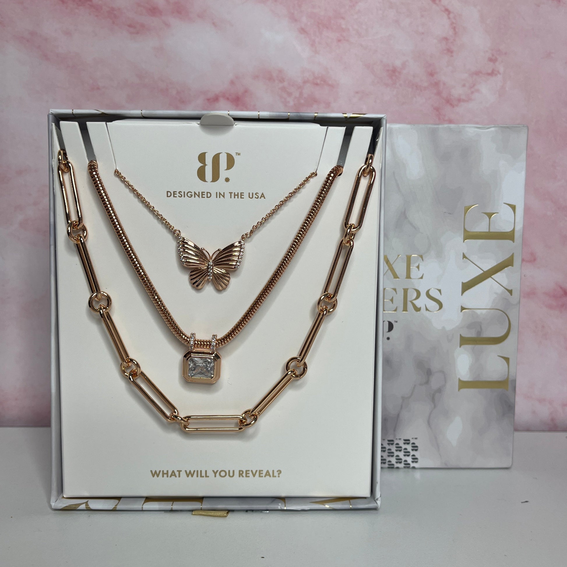 Highly-sought after Luxe Layer 2025 "Butterfly" necklace. Main stone Diamond cubic zirconia on Rhodium Plating.Β