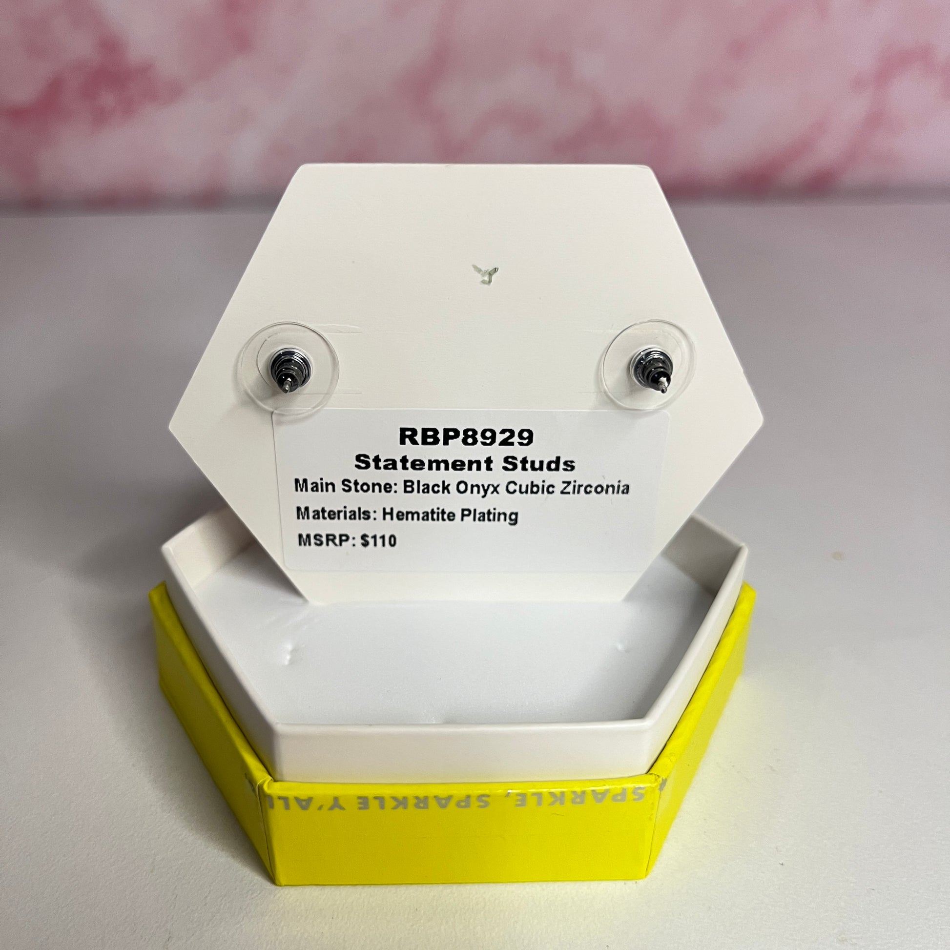 Black Onyx Cubic Zirconia on Hematite Plating.