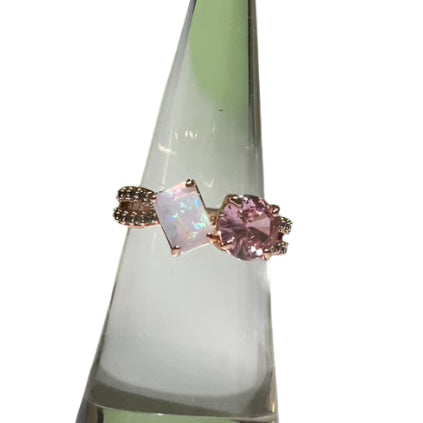 Lab created Pink Quartz & Lab Grown Fire Opal in Rose Gold plating.
