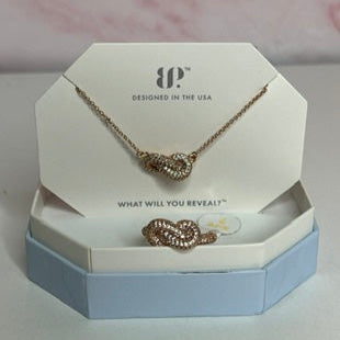 The coveted "Love Knot" set. Diamond Cubic Zirconia on Rose Gold Plating Matching Set.