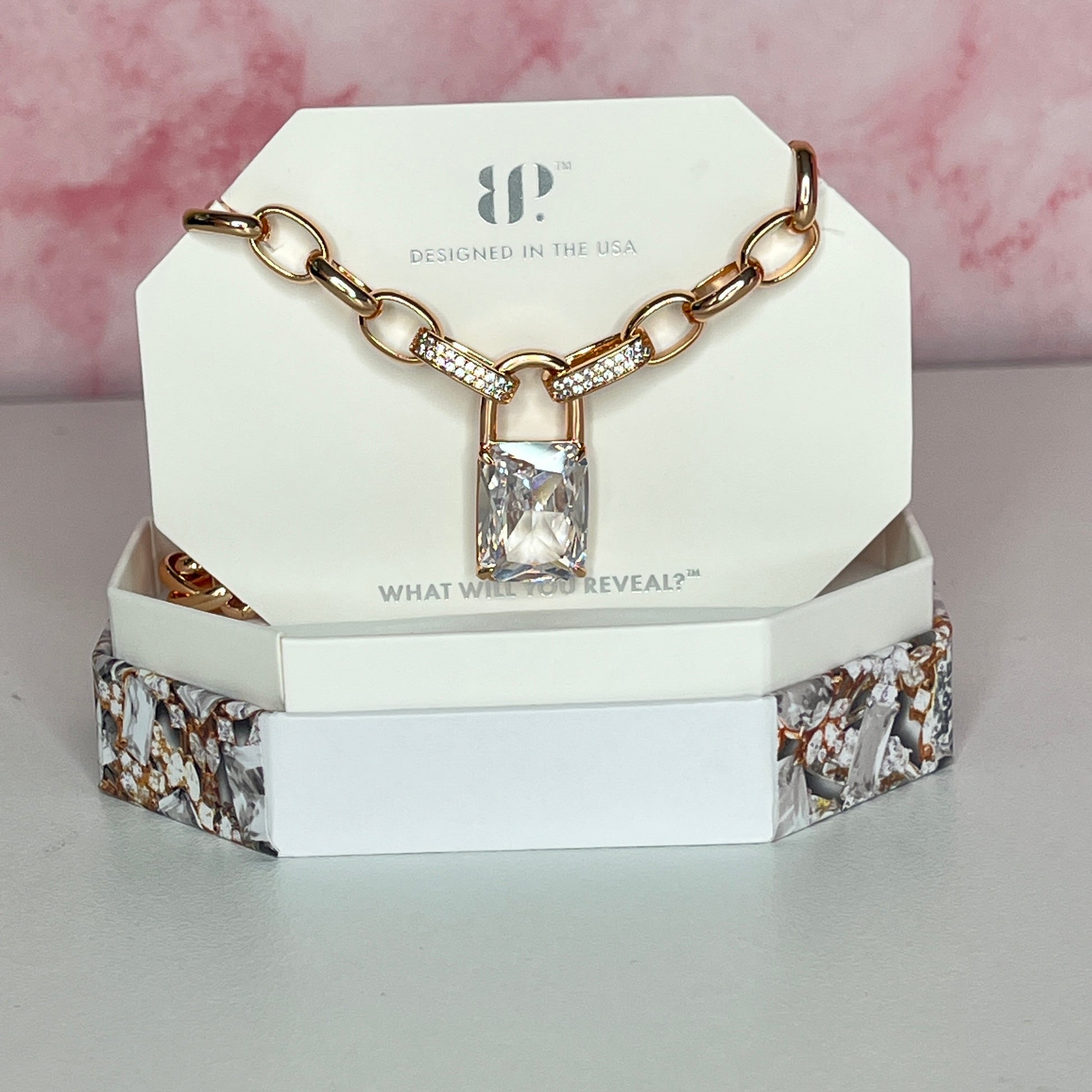 April Birthday 2025 collection. Highly sought-after "Lock" April Necklace. Diamond Cubic Zirconia on Rose Gold Plating.ย